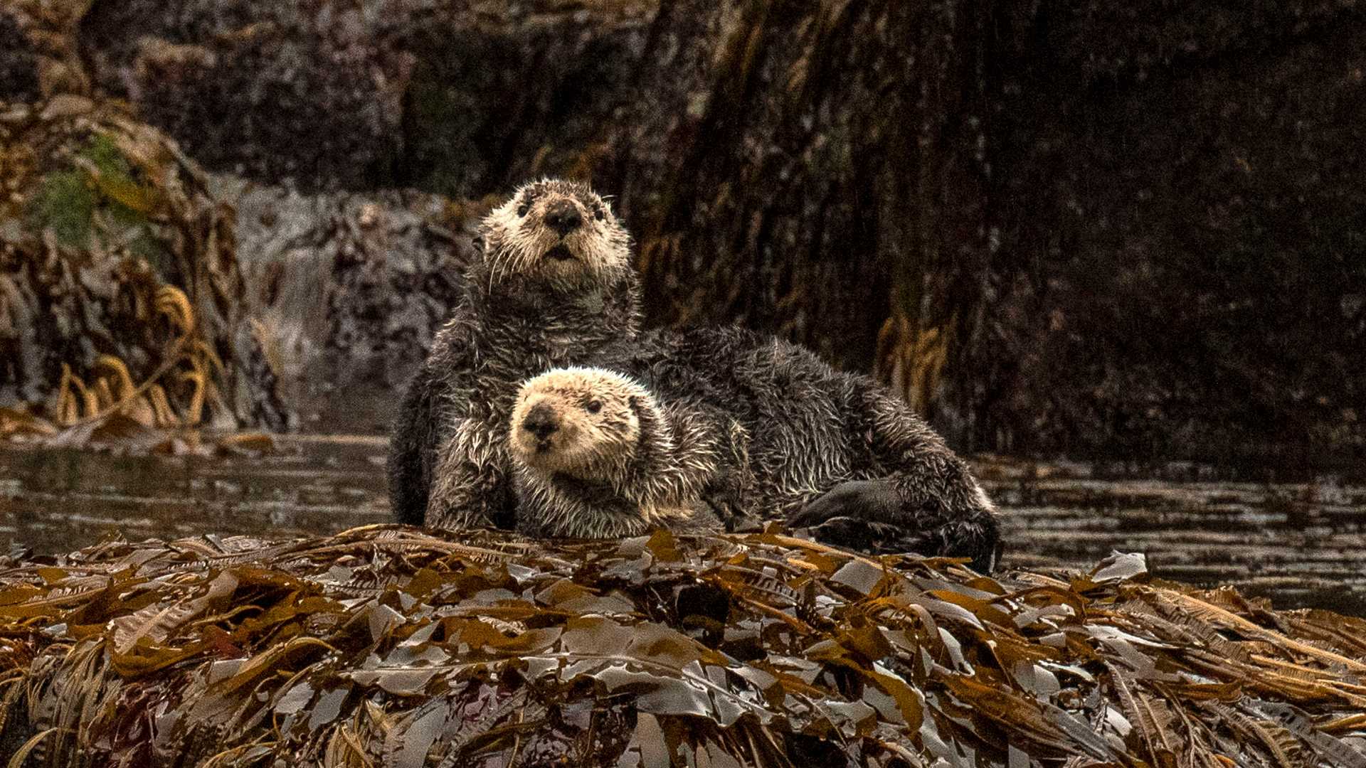 After anchoring in the sheltered lee of the Inians, our intrepid teams of explorers launched by Zodiac, punching out of the sheltered waters to face the full force of the open Pacific Ocean. A favorite wildlife cruise of the naturalists, the Inians didn’t disappoint. Steller sea lions were on the hunt in the horizontal rapids. They popped up from dives among the whirlpools and eddies with flat fish clenched in their jaws. Tucked back into the quieter kelp gardens, we drifted beside rafts of sea otters, some with young ones riding on their mothers’ bellies.