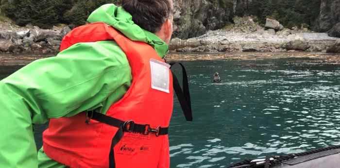 Starting the day with Zodiac tours in the Inian Islands, we saw harbor seals, sea otters, puffins, and many Steller sea lions. The ocean currents seemed to possess a will of their own, nosing and nudging our Zodiacs in whatever direction it pleased. As the ship continued to Port Althorp, the Fairweather Mountainrange came into view, revealing peaks 15,000 feet in ascent. Upon our arrival at the port, the group split between hiking and kayaking operations. Traversing through mud, hikers came across bear tracks, ultimately reaching a stream of spawning salmon, while further downcurrent, kayakers got firsthand vantages of jelly fish and harbor seals.