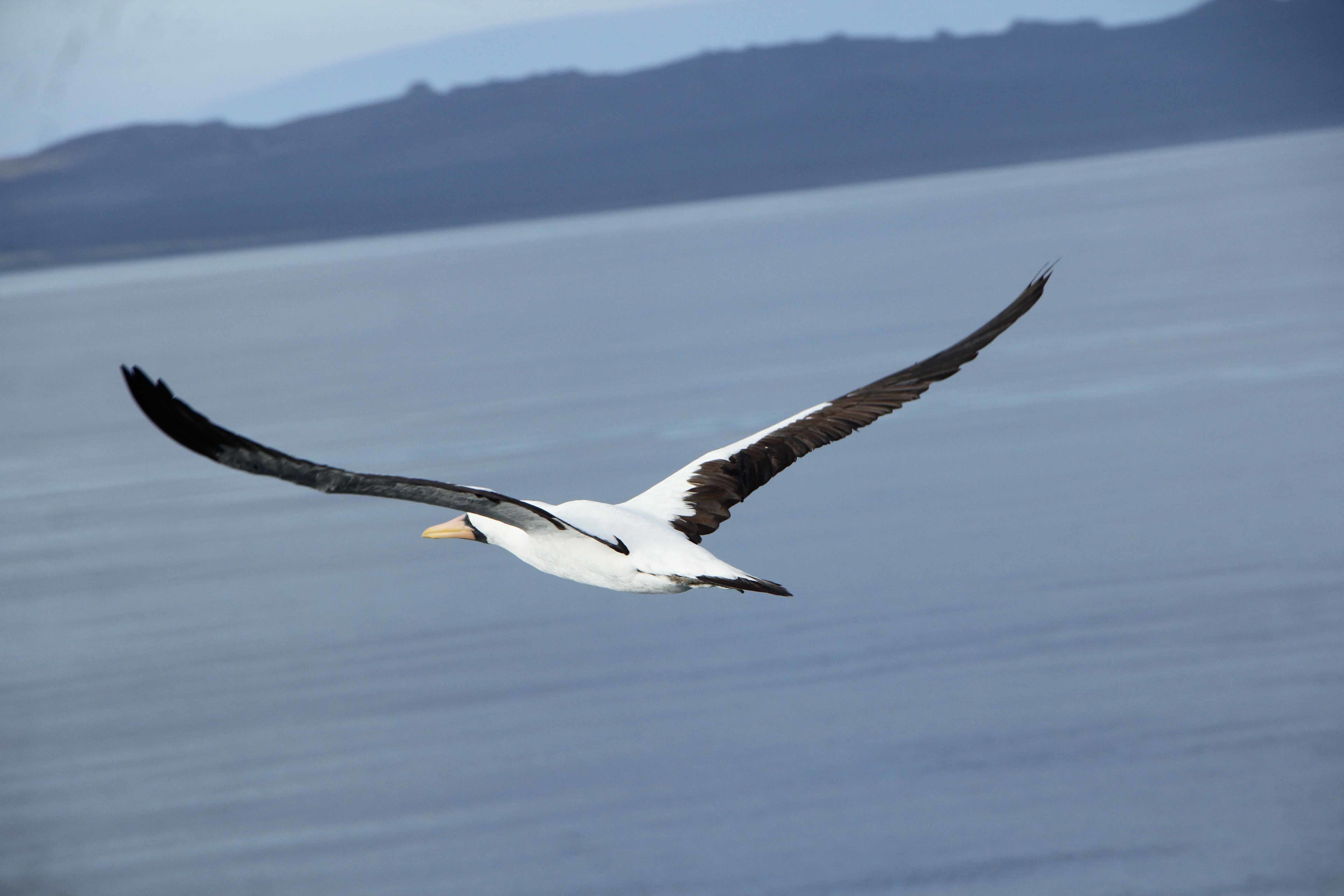 We navigated much of the night and crossed the equator into the northern hemisphere during the wee hours of the morning. Sunrise found us heading west along the north coast of the large seahorse shaped island of Isabela. Isabela is by far the largest island in the archipelago and has more land mass than all the other islands combined. This morning we navigated slowly and searched for cetaceans and seabirds. We were delighted to find many of both—a pod of several hundred common dolphins gave us an amazing show!