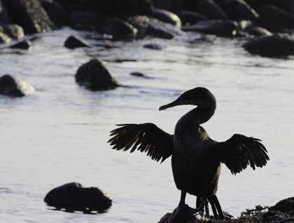 Many of us woke up early this morning to try to find some marine life from the sundeck while we circumnavigated the northern side of Isabela (the sea horse shaped Island). The titans, known as Ecuador and Wolf volcanoes, looked spectacular with colorful lava fields decorated with a yellowish color, harmonizing with the sky on this beautiful morning. After breakfast the ship crossed the equator line, so we celebrated with a special ceremony. As soon we dropped anchor at Punta Vicente Roca we headed out on a Zodiac ride along the coast of Isabela to observe several geological features which are evidence of previous eruptions which occurred long ago. We saw long lines of black lava and blue footed boobies and frigate birds who were looking for food. The sun appeared and warmed up this location and marine iguanas did not lose time to start swimming and trying to eat some seaweed. They were accompanied by some Galapagos penguins which swam as fast as torpedoes and fed on small black striped Salemas. We also spotted flightless Cormorants feeding underwater. We headed back to the National Geographic Islander so our guests could get ready for the snorkeling activity. Our explorers found different species of fish, but probably the most interesting and abundant creatures of all were the green turtles. Of course, Galapagos penguins and flightless cormorants delighted our guests who enjoyed swimming with incredible creatures like nowhere else in the world.