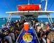 Our journey started with the first light of day. The early risers were on the observation deck with cameras and binoculars in hand, scanning the ocean for marine life. As we navigated along the north side of Isabela, we saw several types of seabirds and some Galápagos sea lions. After breakfast we spotted a large pod of bottlenose dolphins, maybe 300 or more! As soon as we approached them, they started to bow ride and jump. It was a fantastic experience being surrounded by this group of playful marine mammals. Moments later we crossed the famous Equator line and had fun with a little bit of ceremonial entertainment as we took part in the tradition of the crossing.