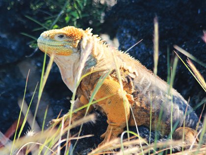 Other reptiles of the area are the beautiful yellow land iguanas and the lava lizards. Now they walk on a place where water used to flow and, as a consequence of magma shifting from underneath, now lies about 12 feet higher. Testimony of the event are millions of broken shells. Still, the best evidence are large pieces of bleached coral now with vegetation growing on or around them.