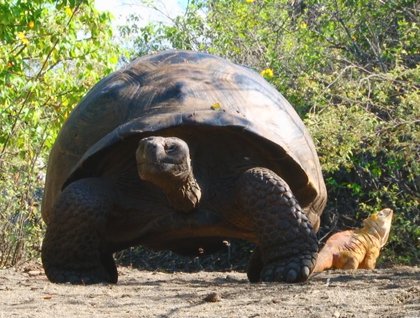 Urbina is especially interesting because this area was uplifted several meters in 1953-1954. Along the trails we see marine tube worms and even coral heads that were once below the sea and now are over grown by vegetation. We were delighted to find a half dozen giant tortoises and just as many large land iguanas on our walks this morning. Because it has begun to rain here on Isabela, these reptiles have come down from the highlands to feed on the new growth vegetation. We all snapped dozens of pictures and enjoyed watching the tortoises as they lumbered along and sucked water from shallow rain pools.