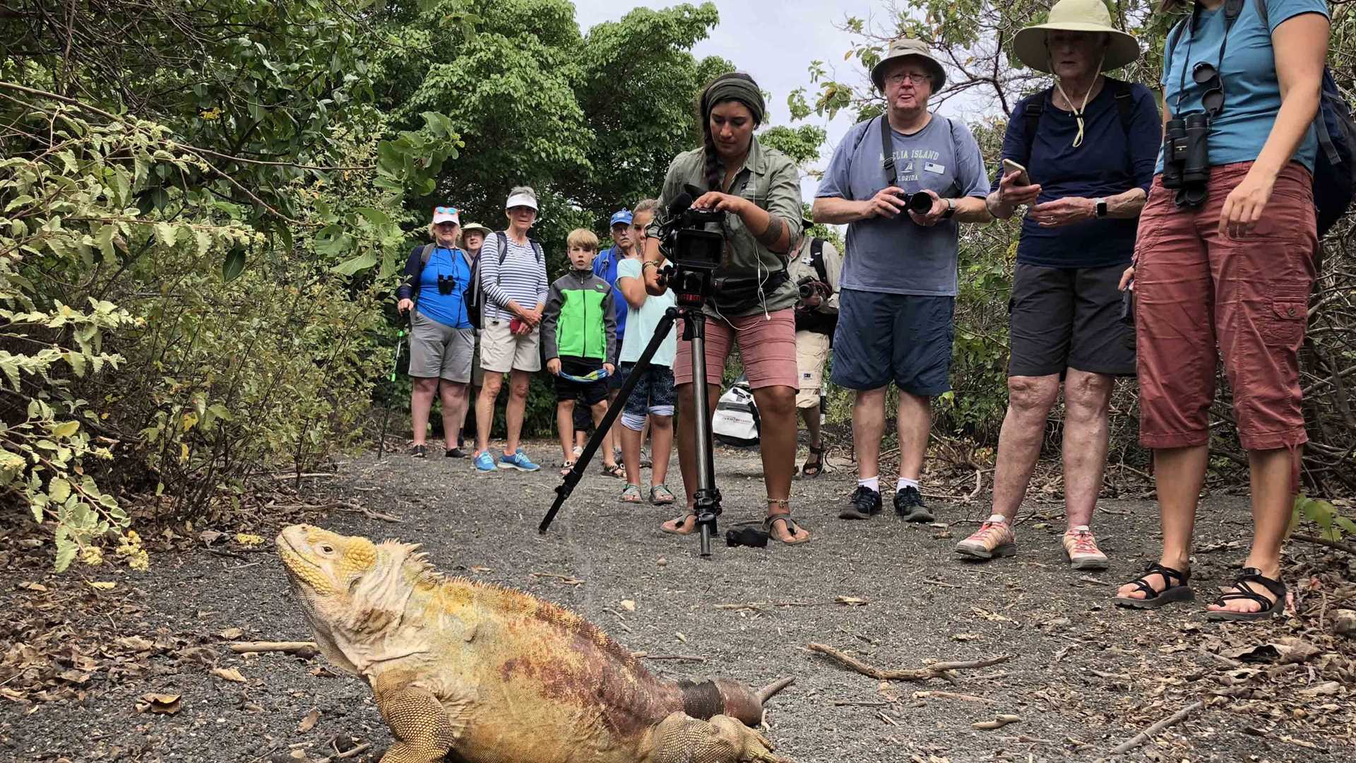 After a magnificent night watching the volcanic explosion of Sierra Negra Volcano, we sailed a few miles north to the coast of Alcedo Volcano. In the morning, we visited Urbina Bay, where we walked on terrain that was uplifted six kilometers, which occurred in 1954 due to volcanic activity. In this area we spotted our first group of Galapagos giant tortoises standing by the trail, and encountered lots of male yellow land iguanas.
