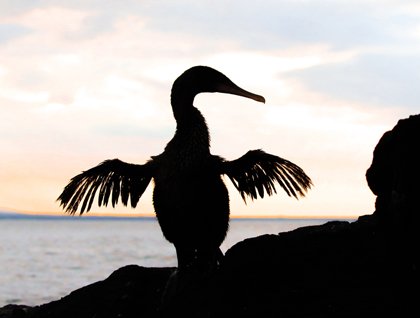 Once everyone was back on board the National Geographic Islander we navigated towards Tagus Cove. This is an important place featuring part of the human history of the islands. Over the centuries wayfarers have found a sheltered harbor at Tagus Cove Bay. This area of Isabela Island was visited by Charles Darwin in 1835. The afternoon was filled up with options, from kayaking to deep water snorkeling and later a Zodiac ride along this amazing coastline or a scenic hike up the rim of a tuff cone.  During snorkeling we spotted a few spotted eagle rays, white-tipped reef sharks, a few Galapagos sea lions playing with us, and several Pacific green sea turtles. The big show was to see the Galapagos penguins fishing and feasting on a school of bait fish right in front of us. After the snorkeling outing, some of us went hiking along the tuff cones of Tagus, to see a crater lake surrounded by the resistant incense tree forest.