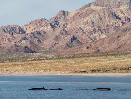 Dawn broke in radiant splendor upon the National Geographic Sea Lion as she slowly cruised the east side of Isla Ángel de la Guarda. The colors along this side of the second largest island in the Gulf of California are all reds and oranges and yellows, and in the morning light they absolutely looked like a painted desert. Long-beaked common dolphins paced the ship in the glass-flat seas, their breaths punctuating the stillness of the water like miniature locomotives.