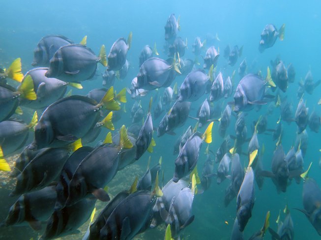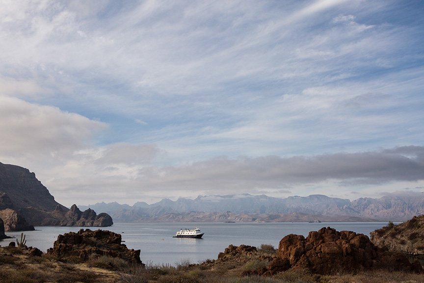 Today was all about sunrise, sunset, snorkeling and hiking in the morning, and an incredible humpback whale encounter in the afternoon! As we rose from our slumber and greeted the morning, we were privileged to enjoy one of those spectacular Baja sunrises that the Sea of Cortez is noted for. After breakfast, we enjoyed a morning of expedition. We explored a new beach, which had great snorkeling, and took some nice desert hikes. Once back onboard, we were off with high hopes to find more whales. We spent the rest of the day enjoying their company, and we were not disappointed. In fact, the bridge crew found two very friendly humpbacks that approached our ship. As we sat motionless for almost an hour, these whales proceeded to go back and forth under the bow before surfacing straight below our extremely excited guests! After our friends finally went on their way, we continued to cruise south and were treated to a magical sunset over the Baja Peninsula. Just another incredible day in the Sea of Cortez!