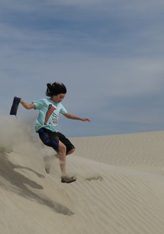 As we walked we encountered many differing patterns in the sand; zipper tracks made by beetles and grasshoppers, bicycle-like tracks made by scurrying crabs, seven-toed coyote tracks made by these desert canines stepping into their own footprints as they trotted amongst the dunes. Delicate prints of mice and lizards were preserved in fine detail near the larger vegetated hummocks. Splashes of color were offered by ground cherry blooming their flat dinner plate flowers, loco weed with stems of purple, and milkweed with sprays of pink-tinged white blossoms.