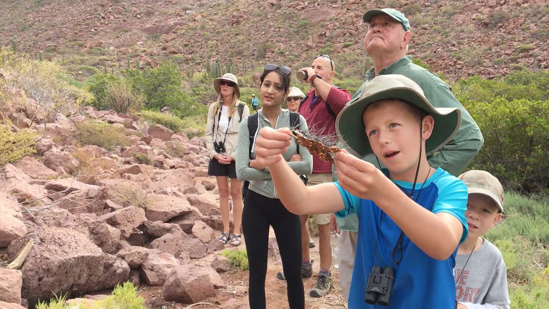 This morning we steamed into the peaceful cove of Ensenada Grande on Isla Partida and fanned out for various adventures. While some legged out across the island, others tested their botanical skills on cacti and mangroves alike.
