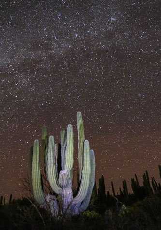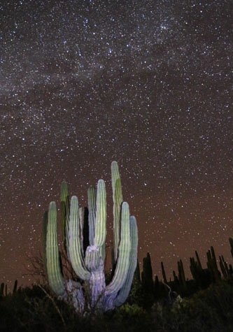 As the sun sets, brilliantly lighting up a few fleeting clouds, dusk finally falls and the stars begin to appear until the sky glitters. Unobscured except for the towering silhouettes of the cardon cacti, the universe unfolds around us and we end a very full day under the majestic canvas billions of years in the making. It’s hard to believe that was just day one.