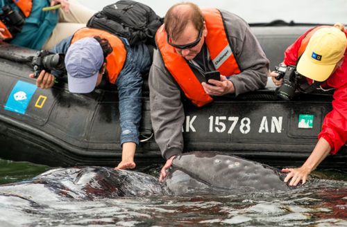 A strange experience as we awoke this morning in Baja: RAIN! Light rain off and on for much of the day was quite unusual, but certainly did not hinder our explorations. We still managed to hike, snorkel, kayak, paddleboard, and play with killer whales!