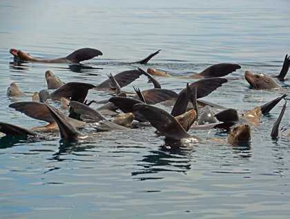 A very colorful sunrise created beautiful patterns on the water as we started our day aboard National Geographic Sea Lion. We enjoyed tranquil seas and an overcast sky, with an occasional glimpse of a marine mammal and some bird watching – Heermann’s gulls, storm petrels, and brown pelicans became photographic subjects.