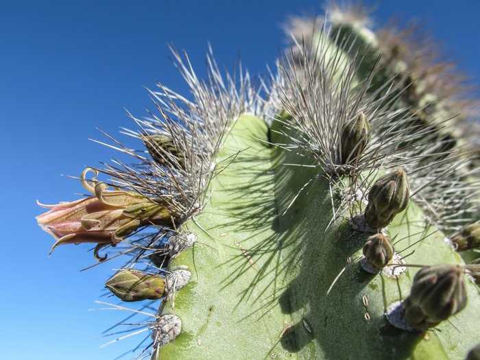 Diversity was the name of the game today. We started with hikes up a flower-strewn arroyo on Isla San Marcos. Lizards scurried and butterflies fluttered from flower to flower as we wound our way up the canyon in full appreciation of the shade offered by the Palo Blanco trees. For the afternoon we strolled not through canyons but through the streets of the town of Santa Rosalia. There we munched on fresh baked bread, admired the ingenuity of the erector set of a church and relaxed on the porch of the local hotel with drinks and guacamole appetizers. Altogether a wonderful, relaxing day in the Gulf of California.