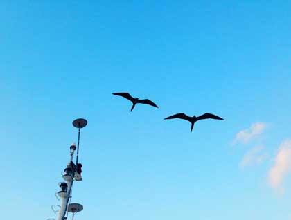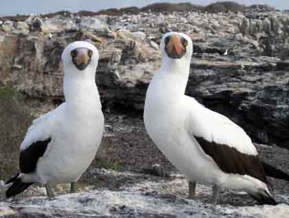 San Pedro Martir is white (and peppered with cactus) from the accumulated guano deposited by its myriad of feathered inhabitants. Until the early 1900s the island was a major site of guano harvesting in the Gulf of California. It is now a preserve to protect the blue-footed boobies, brown boobies, red-billed tropicbirds, brown pelicans and other seabirds that nest there. During both cruises, animated encounters with rambunctious California sea lion youngsters again delighted all. There was also a most unusual, and exciting, sighting of a group of nine Guadalupe fur seals at Isla San Pedro Martir, perhaps a new colony developing in this region.