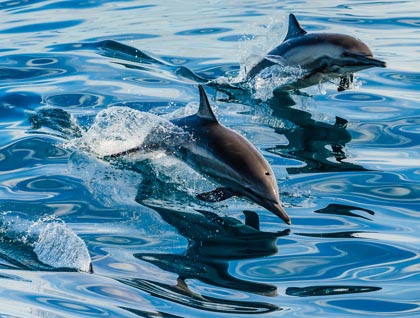 The amazing thing about exploring Baja California is that every day you have the chance to see whales and dolphins. This morning, we encountered bottlenose dolphins after another brilliant sunrise painted the placid waters of the Sea of Cortez. Then during breakfast, a super pod of long-beaked common dolphins appeared right on cue. Jackpot!