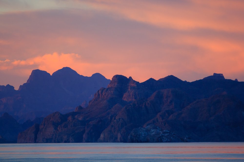 The anchor dropped after lunch beside Isla San Pedro Mártir, an isolated nesting island for seabirds. Blue-footed and brown boobies wheeled overhead as we climbed into our boats for cruises along the shore. Immense rafts of eared grebes floated near the ship. Now and then red-billed tropicbirds passed above us with their streamer tails trailing behind.  Yearling sea lions seemed fascinated by our presence and tagged along with our boats, leaping  like porpoises beside us.