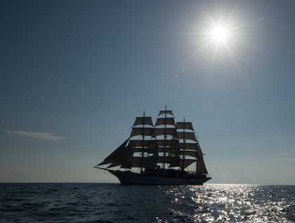 This morning we found perfect winds off the east coast of the legendary island of Ithaca. The crew set the sails with light winds and before we knew it, the Zodiacs were going into the water. Some of us were barely awake when our expedition leader announced the “once in a lifetime” opportunity to go out in a Zodiac and round the Sea Cloud under sail. It was a magical experience, and a highlight of the voyage.