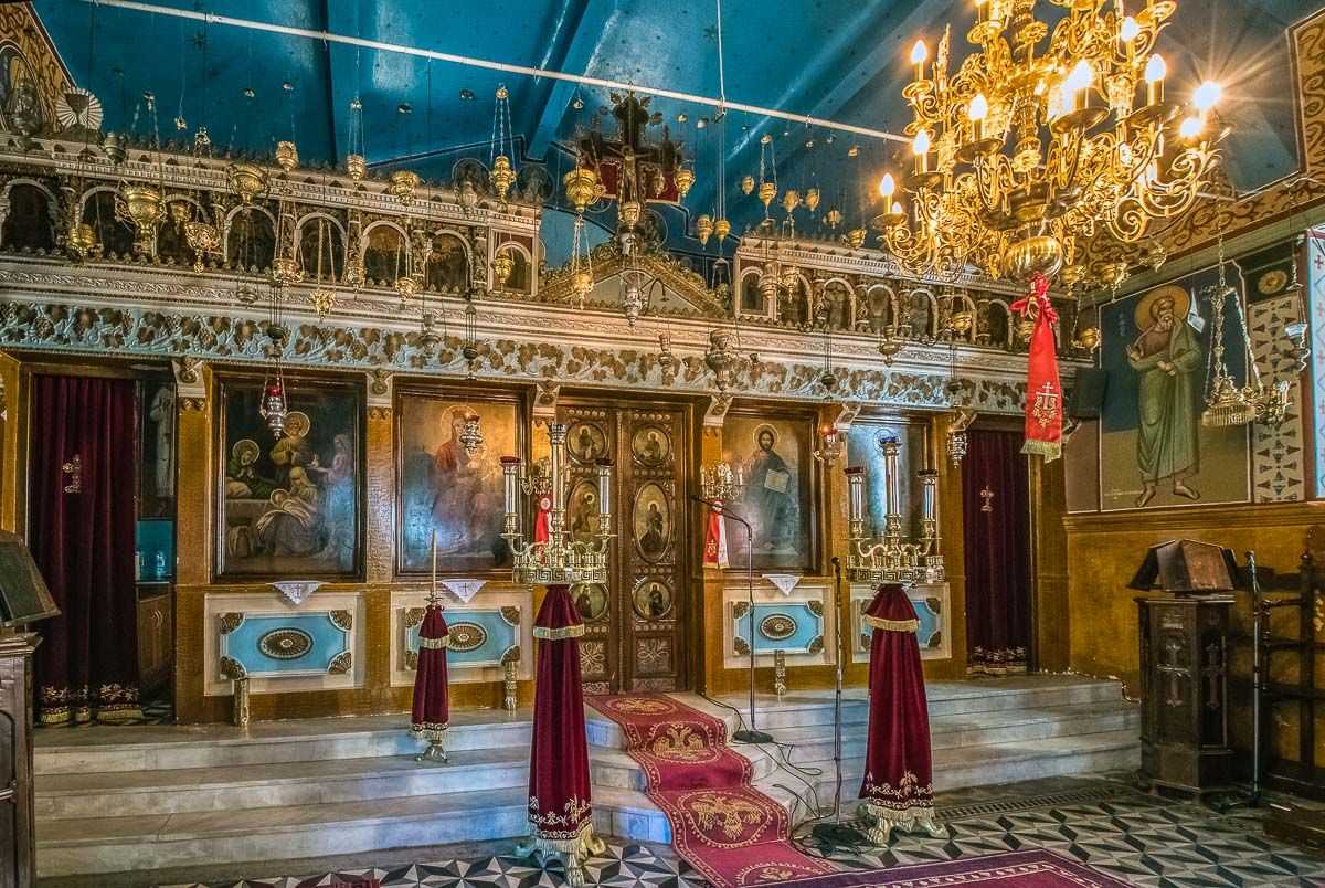Using the ship’s Zodiacs, we made it to the port and from there, our tour to the island began. First, we drove to the biggest monastery on the island, the 17th century Monastery Katharon, where the miraculous icon of the Virgin Mary is kept. The monastery is located at high elevation, and views from the bell tower balcony were breathtaking. We could see the bay of Vathy, the isthmus of Ithaca that connects two parts of the island, and the mountains of nearby Cephalonia. Cameras started clicking, capturing as much as we could of what lay before our eyes.