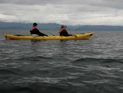 Kayakers paddled in the cove while three humpback whales swam less than half a mile away. It was beautiful to sit inches above the water’s surface, knowing that 35-ton mammals shared the same water. What a thrill to see a humpback whale breach repeatedly! Closer to shore, a young eagle attempted to catch fish.