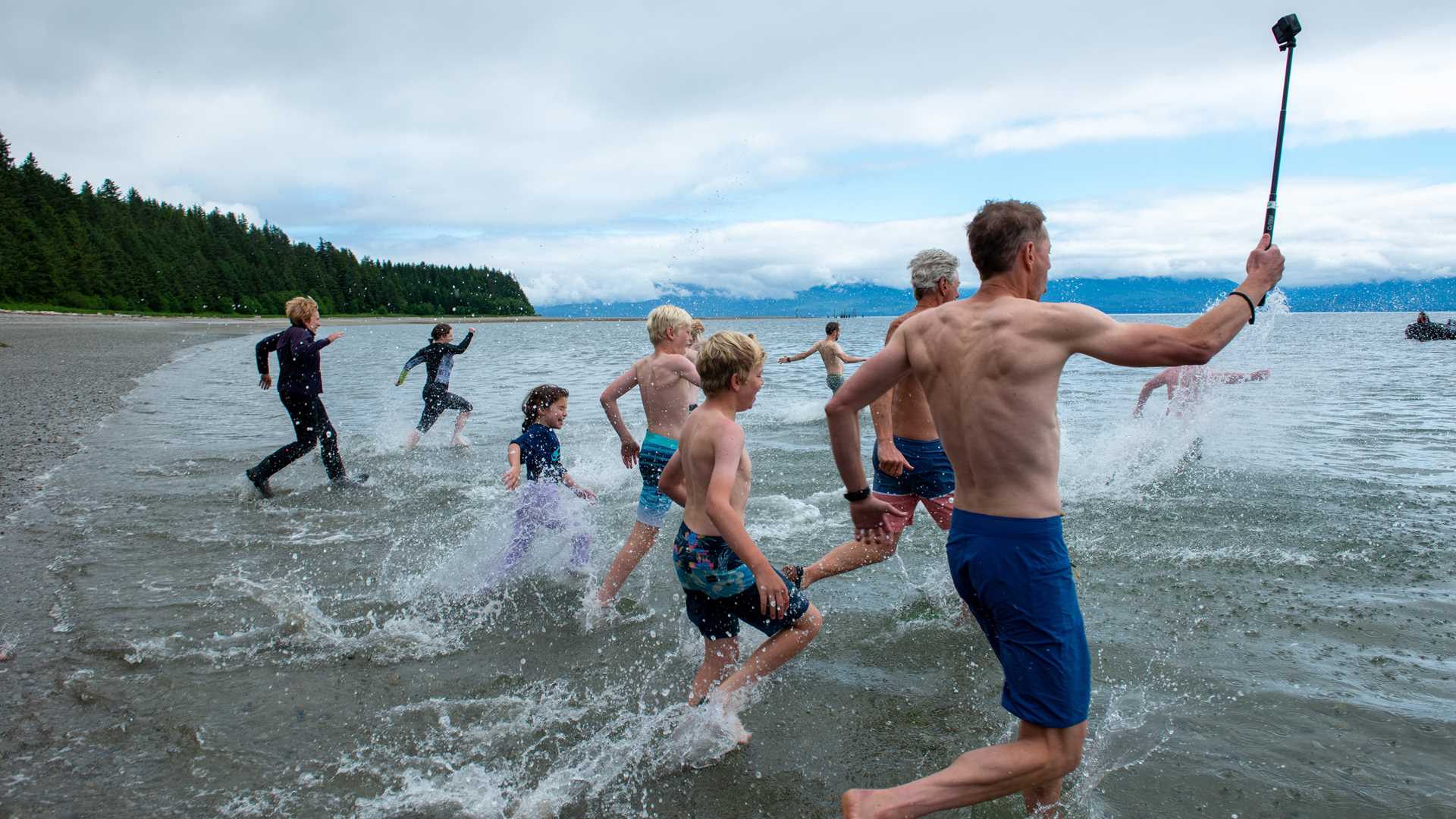 We greeted the morning with happiness. Our Global Explorers were excited for a day of hiking together as a team, with the added challenge of going without parents. We bushwhacked into the Iyoukeen Forest on Chichagof Island. Inland from the thick beach vegetation, we followed bear trails worn clear from decades of use. We learned about lichen, found brown bear scat, and climbed over fallen trees soft with moss.