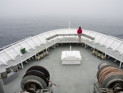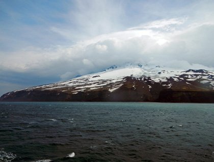 Today was very special indeed because we were able to visit Jan Mayen Island in the far northern Atlantic Ocean. Jan Mayen is an active volcano, very similar to some of the other islands which lie along the Mid-Atlantic Ridge, including Tristan da Cunha and Ascension Islands in the south Atlantic and the Azores and Iceland in the north. But Jan Mayen is the farthest north on the ridge and is very difficult to get to; and once there it is often very difficult to get ashore. This is the first visit by National Geographic Explorer and only the second time that a Lindblad Expeditions/National Geographic ship has visited here.