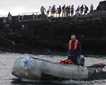 After lunch, the National Geographic Explorer cruised around the north end of the island, where we saw the magnificent 7500-foot-high Beerenberg Volcano peeking out of the clouds. There are 20 glaciers streaming down all the way to the sea, giving the volcano the look of a bowl of melting ice cream. We continued along the entire coast of the island, seeing many red cinder cones, fresh lava flows, and even steam rising from some hot springs.