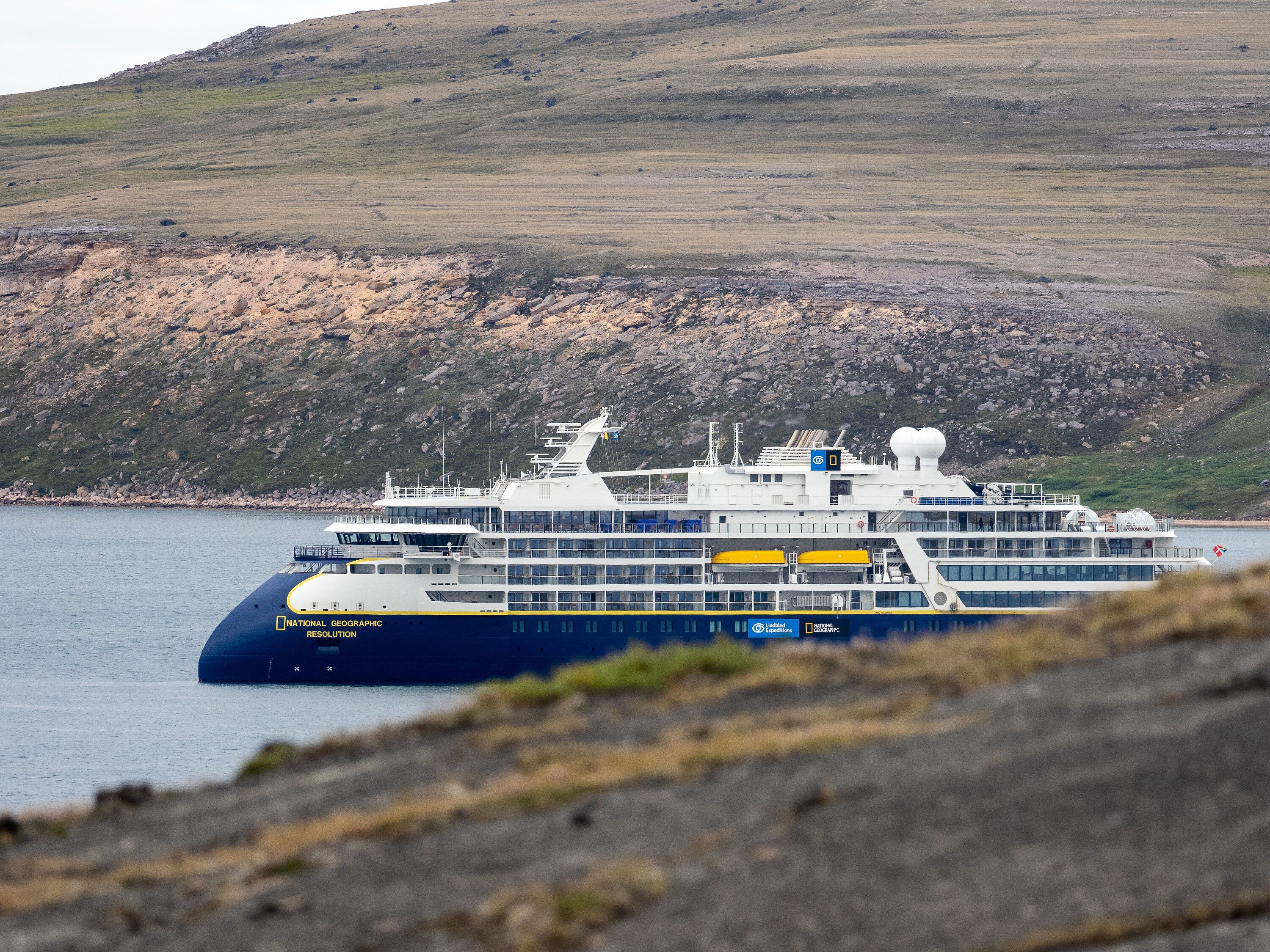 We quietly poked our way deep into Johansen Bay on the south side of Victoria Island early this morning. The water was calm, and the day was promising to be absolutely gorgeous! Everyone aboard National Geographic Resolution eagerly awaited the chance to explore this deep bay. Some chose to explore via Zodiac, but most chose to stretch their legs and hike along the ridgeline overlooking the bay. The rock formations were spectacular, and dotted here and there with tent ring sites, and even some grave sites dating at least a few hundred years back.