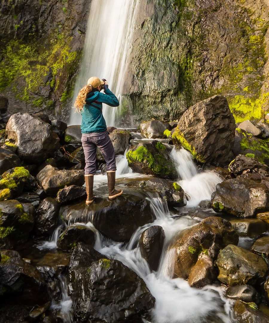 Early morning found National Geographic Orion anchoring in Kamenistaya Bay, a natural amphitheater with a glorious waterfall cascading into the sea. A small ranger cabin near the waterfall added to the photographic opportunities, and we all took advantage of such a picture-perfect setting! As the tide dropped, small pools were exposed where cool ocean water met with boiling hot thermal waters to create a natural Jacuzzi. A few stalwart guests and staff braved the alternately hot and cold water to soak in the pools at the foot of the amazing cliffs!