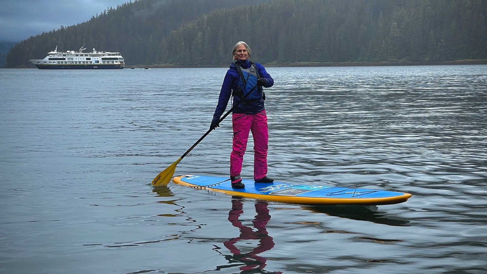 We spent the rest of the morning on Zodiac tours and kayaks/paddle boarding in Kelp Bay amongst beautiful vistas as backdrops. Old growth hikes filled the afternoon. Groups visited salmon streams, deep forest, and muskegs. It is quite a special feeling to step on the moss carpeted forest floor amid spruce and hemlocks that are hundreds of years old—one’s perspective shifts when in the old growth.