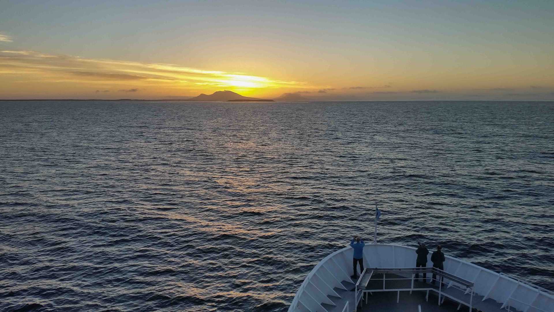 Today we visited two unique islands in the West Falklands. Keppel Island, once an early missionary to Christianize Tierra del Fuego Indians in the 1850s and later, as most places here, an active sheep farm, it now lies vacant since 1992 when the last occupants shuddered up the stone and timber buildings. Very few visitors ever step foot here, and this morning we had time to explore the ruins of the old settlement and trek over 6 km across the island in hopes of spotting birdlife utilizing the several insular ponds. For the afternoon’s attraction we crossed over to neighboring Saunders Islands to once again cast our eyes on both a thriving black-browed albatross and rockhopper penguin colony. Later on the ship repositioned to the other side of Saunders where we had a special champagne reception on the historic site of Port Egmont, the first settlement in the Falklands dating back to 1766.