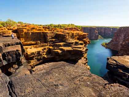 The National Geographic Orion anchored in Koolama Bay on sunrise, and seamlessly lowered the Zodiacs for an early morning disembarkation.  The sun was only just up as the first Zodiacs left the ship and headed up the King George River for our hike to the top of the falls.  On the way up the river we stopped to look for wildlife, and to enjoy the stunning geology of the area, but our main focus was to get to the start of the hike before the sun was too high and the heat too great.