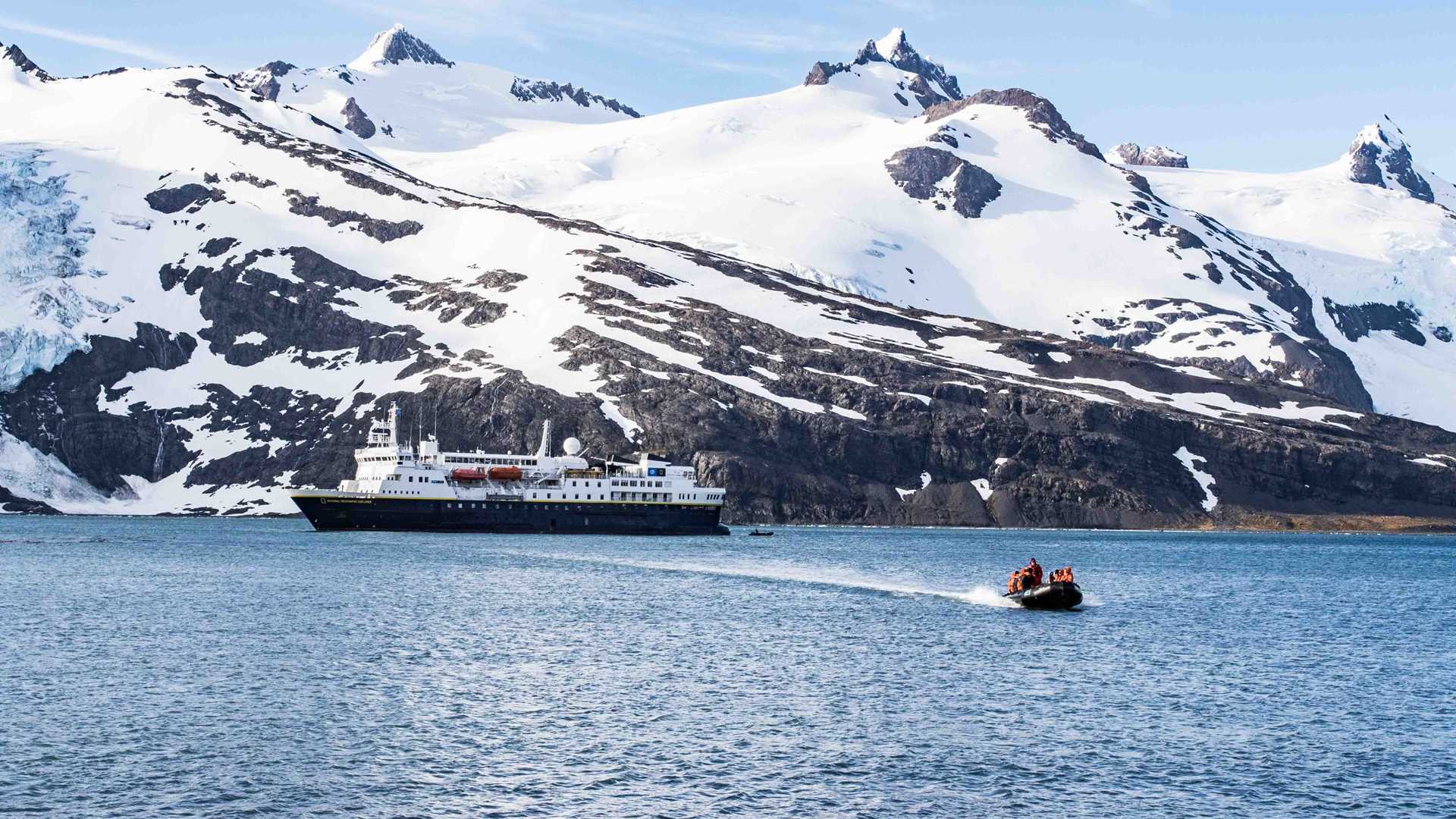 It was a perfect place to finish off our time in South Georgia. On the way out of the main bay, the Captain passed close by Cave Cove, so we could see where Shackleton’s small boat, the James Caird, first landed—a small speck on a beach in the big Southern Ocean. Then we were off toward the Falklands. We spent the afternoon resting, viewing photographs from the morning ashore, and listening to presentations by the ship’s staff. As the sunlight faded, the shape of an amazing geography and wildlife haven receded behind the stern of the National Geographic Explorer.