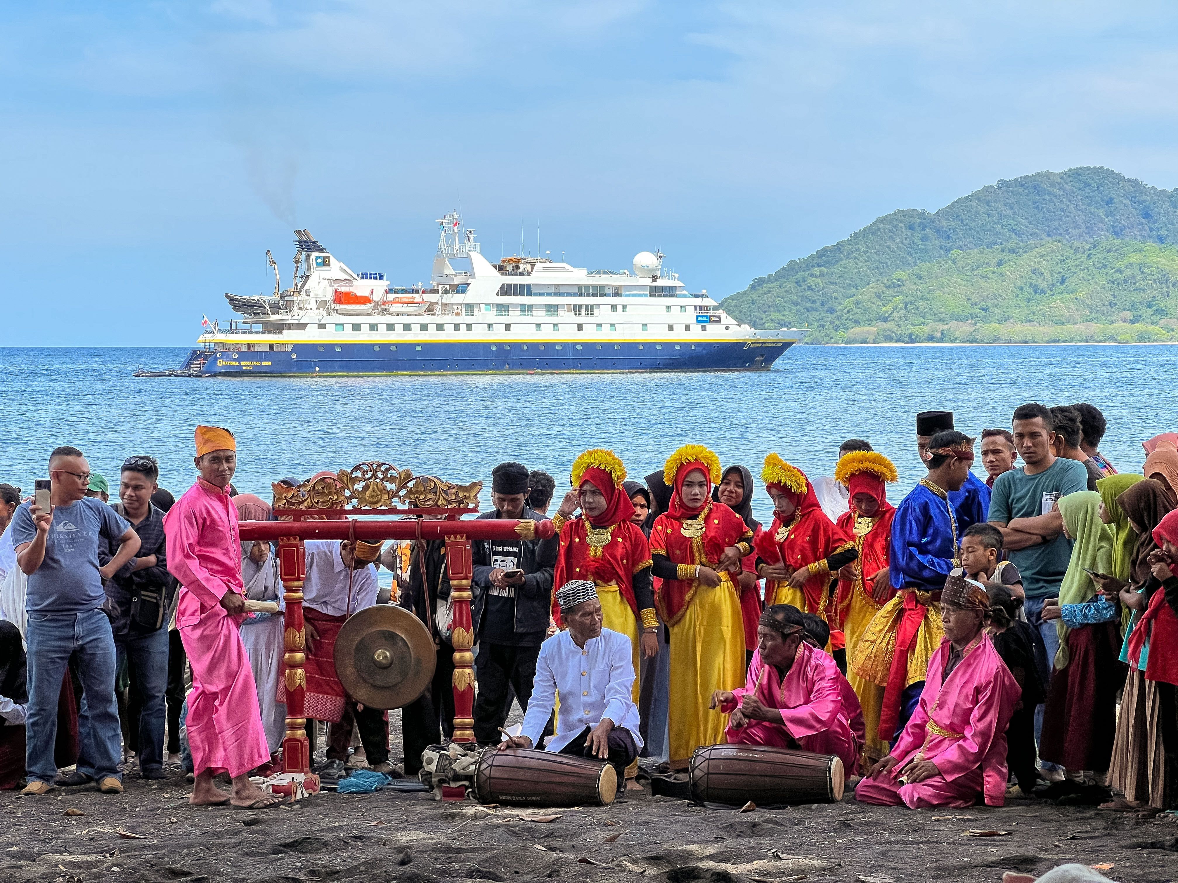 Guests aboard National Geographic Orion arrived at Kananga, a village in Sumbawa, Indonesia, on Wednesday morning, where we were greeted with a cultural celebration. The locals put on a beautiful dance performance to welcome our guests. After several hours ashore, enjoying life in this small, remote village on the island of Sumbawa, we came back to the ship to prepare for the end of our journey and a celebration of our time spent journeying from Papua New Guinea to Bali. The highlights of the evening were the Captain’s cocktail party and the celebratory guest slideshow presentation prepared by photo instructor Lisa Hornak. It has truly been an incredible journey!