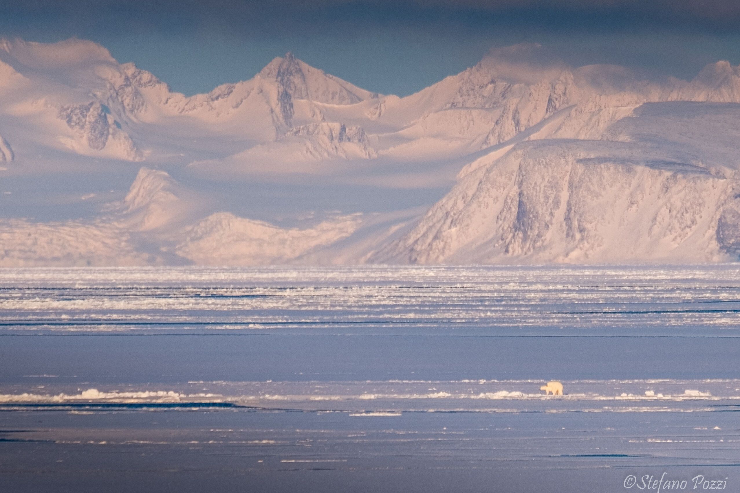 Krossfjord is on the west coast of the island of Svalbard, near the area where the last remains of the Gulf Stream give their final warming effects to the local waters. This makes it a productive and slightly less icy body of water. However, the stunning tidewater glaciers that have carved the fjord still supply the area with massive blocks of blue and cerulean icebergs. We began our day at Lilliehook Glacier, at the far northern end of Krossfjord. Stretching 11 km (five miles) wide at the calving face, it was a massively impressive sight to enjoy as we ate breakfast. Afterwards, we navigated south to the Fourteenth of July Glacier, named by the Duke of Monaco after Bastille Day, the national day of France. We explored the bay by Zodiac. Encountering walruses on ice and waterline views of icebergs were definitely highlights. In the afternoon, we turned north and sailed towards the polar pack ice, located to the north of the Svalbard archipelago.
