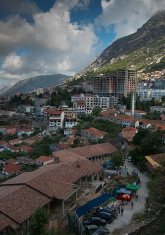 We traveled by bus through the busy port city of Durres, heading towards the beautiful old Albanian capital of Kruje. This picturesque town is located under spectacular limestone escarpments, and with a privileged view of the lowlands and the Ionian Sea. Here we learned about Albania's national hero, George Kastrioti (Scanderbeg), who organized feudal lords to resist Ottoman rule and inspired national identity. We visited the Scanderbeg museum and the Ethnographic Museum, and walked through a fascinating little medieval bazaar.