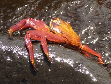Porpoises occasionally broke the surface as we turned from Chatham into Peril Strait. We soon prepared for a landing at the beautiful Lake Eva trailhead. The intertidal area is quite extensive here, especially today during a very low tide. It was an exploration hike just making it to the start of the actual trail. Dozens of mottled sea stars were high and dry as well as the skinny-legged decorator crab with its very pointy head. Butter and large horse clams appeared strewn about with cockles galore. Those wading in shallow water also found a 2-foot-diameter sunflower star and a Dungeness crab scurrying away.