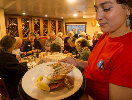 Back onboard the ship at midday, we got treated to a delicious lunch as usual. In the afternoon, naturalist Cristiano Damiano gave a talk about shark biology and conservation, and later on National Geographic’s photographer Michael Melford delighted us with stunning images from his travels around the world. After a wonderful ‘Ring of Fire’ buffet the crew entertained all of us with some fantastic performances and even got the people in the last rows out of their seats and dancing to the rhythms. What a way to end a perfect day!