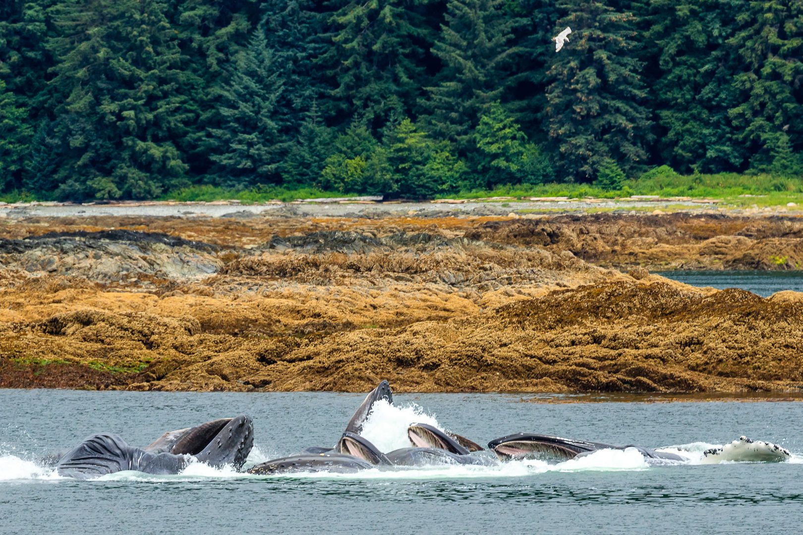 The mouth of LeConte Bay is shallow where ancient moraines rest just beneath the surface. Immense blue icebergs from the glacier far up the fiord run aground here, and after breakfast we set forth to view them at close range. During the afternoon we tied up at the dock in Petersburg where we could join the staff for a variety of outings, explore the town, hop on bicycles, or go flightseeing by float plane.