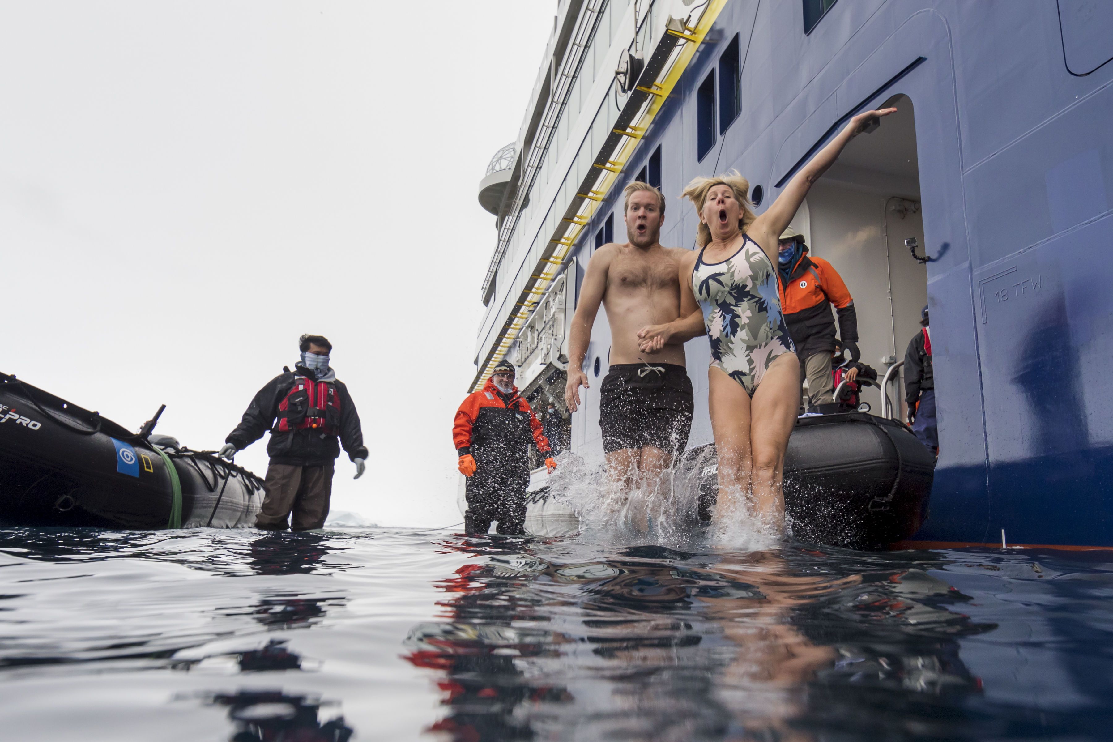 Snow arrived during the night, and we awoke to the surrounding mountains covered in fresh powder! Snow continued to fall as National Geographic Resolution made her way through the Lemaire Channel, blanketing the ship in an ethereal downy covering. We continued through the channel and encountered pack ice. We pushed through before turning around to head to our afternoon destination.