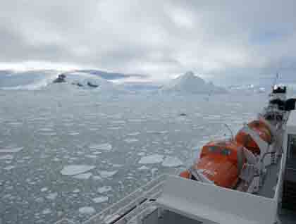 We woke to diffuse morning light flooding the brash ice and glaciers of Lindblad Cove. This inlet in Charcot Bay provides us with some of the most striking views of ice that can be seen on the Antarctic Peninsula. Several hours were spent here taking in the radiant white spectacle that surrounded us before we finished breakfast and headed onwards towards our next destination. Humpback whales and minke whales were present throughout our transit, much as they had been amongst the ice also. As we travelled along the majestic Antarctic coastline, we listened to talks by some of our expedition team. Jason Kelley, one of our naturalists, gave a talk on ice, appropriately. This helped us to appreciate our surroundings in a way that went beyond the aesthetic. After this, we listened to Global Perspectives Guest Speaker, Peter Hillary, recount stories of some of his own adventures in some of the more hostile regions of Antarctica. By the time this ended, we had arrived in Mikkelsen Harbour.