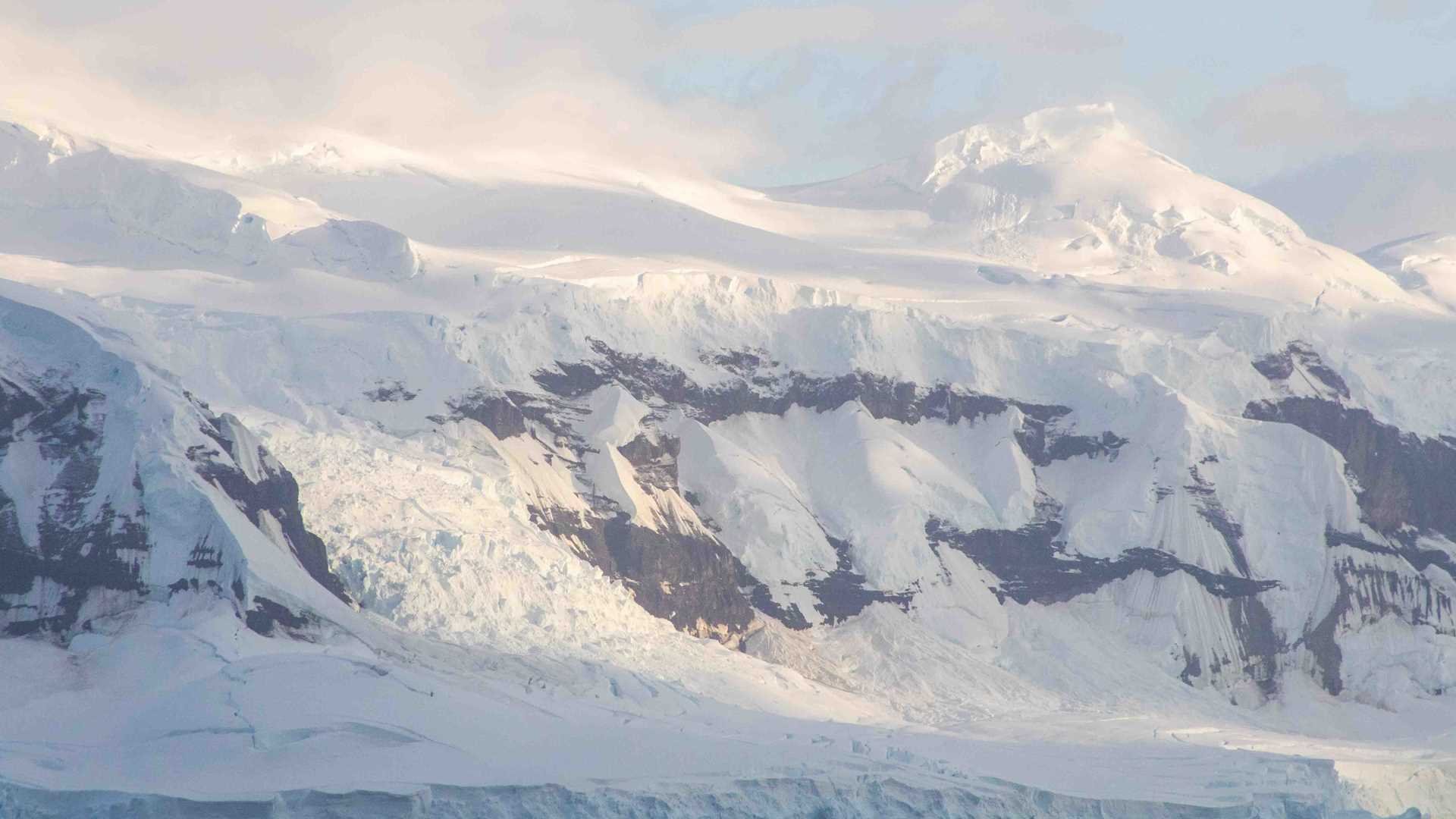 Morning brought higher clouds and no precipitation, though yesterday had not dampened our appreciation for the beauty of the landscape. As breakfast was being served, we slowly cruised into a channel called Lion Sound. We were immediately surrounded by the tall snow and ice-shrouded mountains of Anvers Island and Lion Island. Zodiacs were deployed for an extremely scenic cruise through the sound and along the nearly vertical shores. The sea conditions were mirror-like. Minke whales and leopard seals were spotted by various groups on their routes. With the outboards turned off, the massive silence was punctuated by cracks, booms, and crashes as sections of glaciers fell off the cliffs.