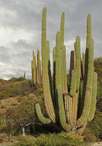 The rain abated and hikers strode up a sandy canyon on walks of various lengths. Giant barrel cacti, unique to this and a couple of nearby islands, and towering cardon cacti (see photo) rose above thick shrubbery. This vegetation is characterized as Sonoran Desert, similar to that of parts of Arizona. One vigorous group reached the crest of the island, while others invested their time in examining and photographing the landscape in more detail. One of our young, sharp-eyed guests spotted an endemic rattle-less rattlesnake, a very special sighting. As daylight drew to a close and a rainbow rose from the sea, all returned to the ship for a recap of the day’s activities, including some footage taken by our Undersea Specialist, and for a delicious dinner and evening presentation on photography before heading to bed.