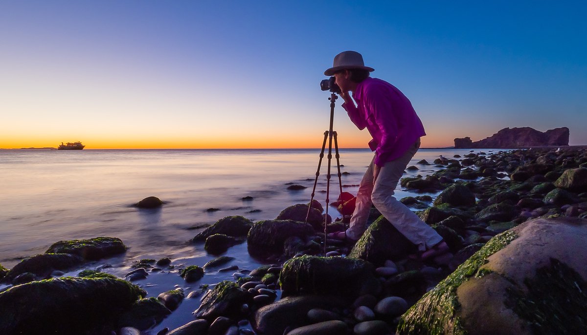 A beautiful sunrise across the peninsular range greeted us as we cruised the San Jose Channel this morning. We spotted a large pod of common dolphins surfing in the wake of our ship. Afterward, we came ashore at Puerto Los Gatos on the mainland of the peninsula. We hiked through the desert arroyo and summited a peak overlooking the bay. As we explored the shoreline of this remote coast, pink rocks of lithified sand dunes served as a striking backdrop for our peaceful morning. Guests snapped triumphant photos while taking in the whole of the arroyo’s ecosystem. During lunch, we repositioned the ship toward Isla San Jose. We spent our last afternoon in the protected waters of Kelly’s Beach. We enjoyed kayaking and SUPing, or stand up paddleboarding. Our small travel group became quite close over these last four days. We encountered a mix of emotions as we recounted our trip and prepared to say goodbye. I hope we will sail again together soon, and from all of us here aboard National Geographic Venture , we wish you safe travels!