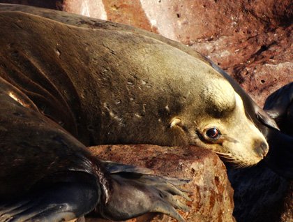 Red clouds graced the early morning sky, and as their color faded, a green flash dazzled those on deck who saw our first sunrise in the Sea of Cortez, where we would spend the next week of our “Remarkable Voyage.” The anchor chain clanged noisily in the lee of Los Islotes, rocky islets of volcanic tuff that offer a safe haul-out site for California sea lions. Soft, low-angle sunlight, ideal for photography, bathed the rugged cliffs and the graceful bodies of these pinnipeds as they relaxed on the rough-hewn rocks. A large male glared at us suspiciously.