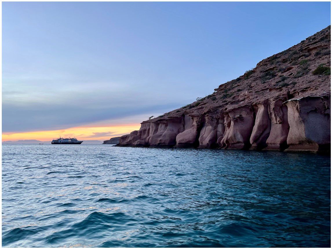 The day began with heavy winds and plentiful whitecaps in the Sea of Cortez. As we sailed through the Vermillion Sea, we saw a group of blue-footed boobies (a “brassiere”) fly by on their way to a meal. We actively searched for mammals but with the winds creating substantial waves and whitecaps we were unsuccessful. Weather dictates our plans in Baja California Sur, and we quickly adapted and went to Kelley’s Beach on Isla San Jose. Hiking in an arroyo, walking in the cardon forest, and a beachcombing stroll were each offered in two rounds so everyone could partake in two different activities if they desired. In the afternoon, the heavy winds created a favorable surprise, and we had an unexpected opportunity to snorkel at Ensenada Grande near Isla Partida, which is a part of the Espiritu Santo National Park. This was a drift snorkel next to some stunning lava cliffs which offered nice views of a diversity of fish and coral species. As we finished snorkeling, the sun was setting as we headed back to the National Geographic Venture .