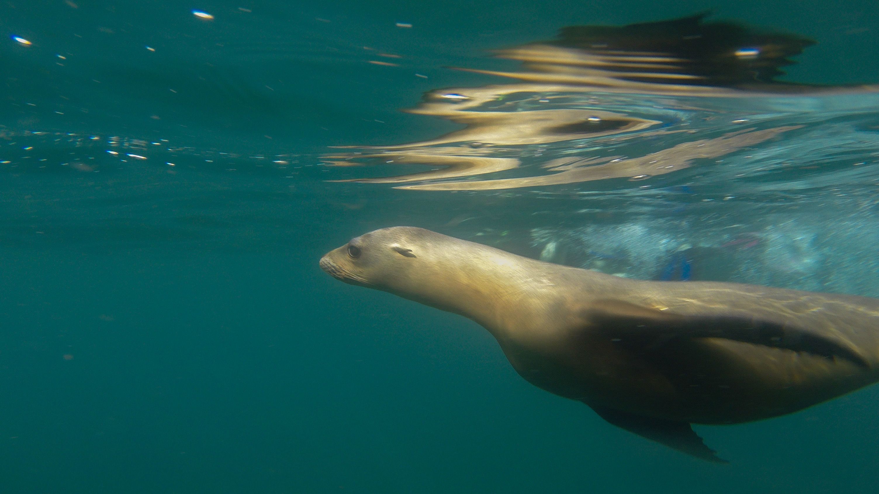 The second day of our adventure found National Geographic Venture at Los Islotes, a small rock outcropping in Espiritu Santo National Park. This small island is home to a colony of California sea lions. We spent the morning in the water, snorkeling with the juvenile sea lion pups. In the afternoon the ship repositioned so everyone could go ashore, but on the way we were distracted by a huge pod of common dolphins. The dolphins played in our wake and rode the bow as we cut through the water. When we finally did pull ourselves away from the marine acrobats, we had a chance to play on Kelly’s Beach. We broke into groups and tried out kayaking, stand-up paddleboarding, hiking, and even beach yoga!