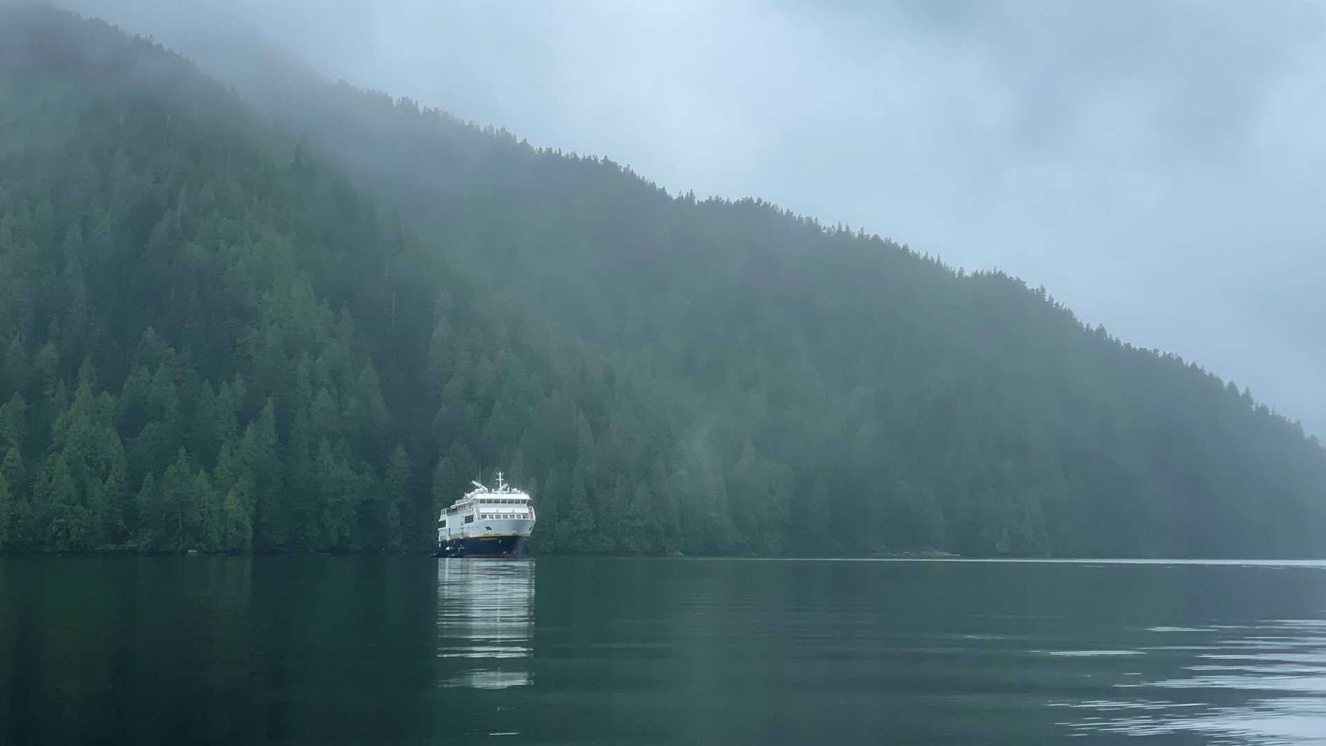 On this, the final day of our expedition, we awoke to the sound of rain in Lowe Inlet Marine Provincial Park. After several days of attempting to make our way to Lowe, only to get thwarted by whales, killer whales, bears, and other wildlife, we finally arrived today. The rainforest greeted us with the full rain shower service we have come to love and expect, and we greeted the rainforest first thing in the morning with the option to either hike or cruise through this lovely place. Intrepid hikers made their way from the inside of the back bay of Lowe through the home of the Great Bear and into the muskeg typical of this landscape, which used to be covered in glaciers. Those of us who explored by water were treated to a close-up view of Vierney Falls. We also explored the back bay where salmon swam, herons hunted, eagles perched above us, and kingfishers dipped about. Early on, our Zodiacs spotted yet another black bear, who greeted us before wandering back into its forested home. This trip has been so full of bears that we are struggling to keep count. After our cruises, we loaded back onto the vessel and turned due north to our final destination of Prince Rupert, our first stop where we began so many days ago.