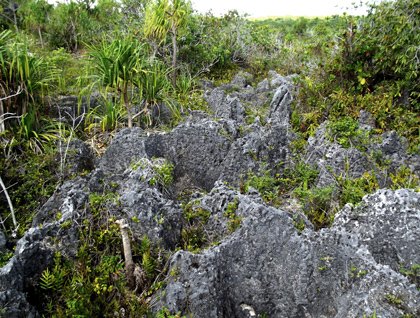 Makatea Island is very important from a historic point of view because the center of the island was once a solid mass of phosphate that was produced millions of years ago when the island was submerged and large amounts of rich organic material decayed on its reef. As bacteria metabolized theis organic debris, it precipitated the phosphate and long after the island was uplifted, erosion concentrated the phosphate to form the valuable deposit which was mined jointly by the British and the French until 1966, when the phosphate reserves were depleted. Phosphate rock is processed to form phosphorus compounds which are then mixed with nitrogen and potassium (potash) to produce synthetic fertilizers. Only about 50 people now inhabit the island.