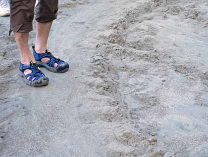 There were two types of hikes offered, one journeying up the heights of the park to Cathedral Point and the other on a flat, forested trail in Sloth Valley. Both trails offered an abundance of plant and wildlife such as three varieties of monkeys: howler, white face, and squirrel monkeys. One of the first sightings was a track marking a sea turtle’s morning walk and some viewed iguanas and sloths. Many different birds were noticed. An osprey eating a fish was observed through a scope on shore. A nesting pair of golden-naped woodpeckers sang happily in the dead palm above us, visually tantalizing us with their unique markings. Also, the golden-hooded tanagers, purple-crowned fairy hummingbird, and black-hooded antshrikes flew circles around our groupings. Two people were lucky enough to see the rare parrot snake slithering near the trail.