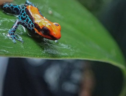 Casual Trail was the next exploration of the morning. The rain picked up again, without deterring us from exploring the jungle for the first time. We had a nice introduction of the amazing biodiversity that exists here. We got to see the poison dart frogs that a couple local men collected for us to see. As we walked listening to our knowledgeable guides, the locals would venture into the jungle to surprise us with their findings. Pink toed tarantulas, dart frogs, and other creatures were the theme of conversation for the morning, and good subjects for macro photography.